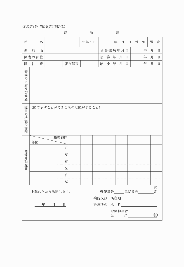 2 村は、障害者に対し、災害弔慰金の支給等に関する法律(昭和48年法律第82号)別表に規定する障害を有することを証明する医師の診断書(様式第1号)を提出させるものとする。