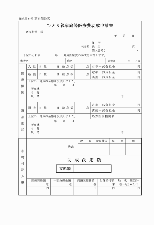 ○西原村ひとり親家庭等医療費助成に関する条例施行規則