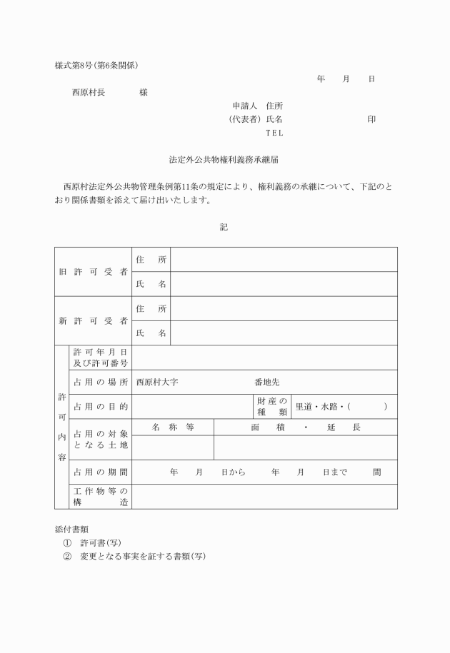 ○西原村法定外公共物管理条例施行規則