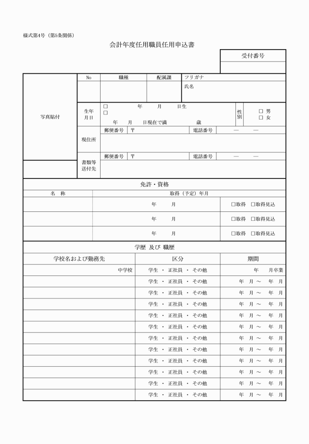 (3) 会計年度任用職員任用申込書(様式第4号)