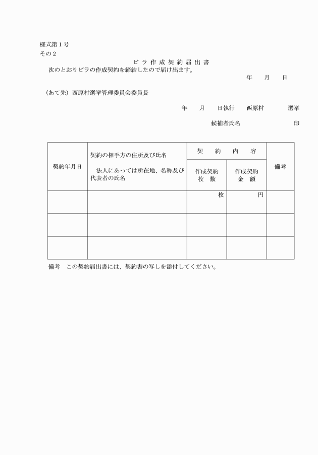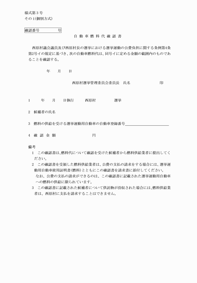 ○西原村議会議員及び西原村長の選挙における選挙運動の公費負担に関する条例施行規則