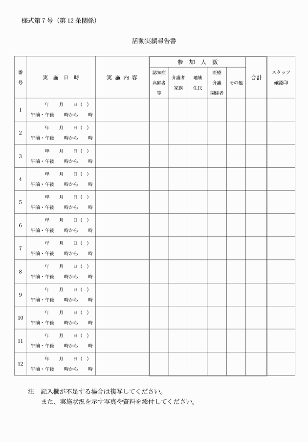 (4) 実施目標の設定や実施後の効果検証等を行いながら、効果的かつ効率的な実施に努め、毎回参加者の構成及び人数等を記録すること。